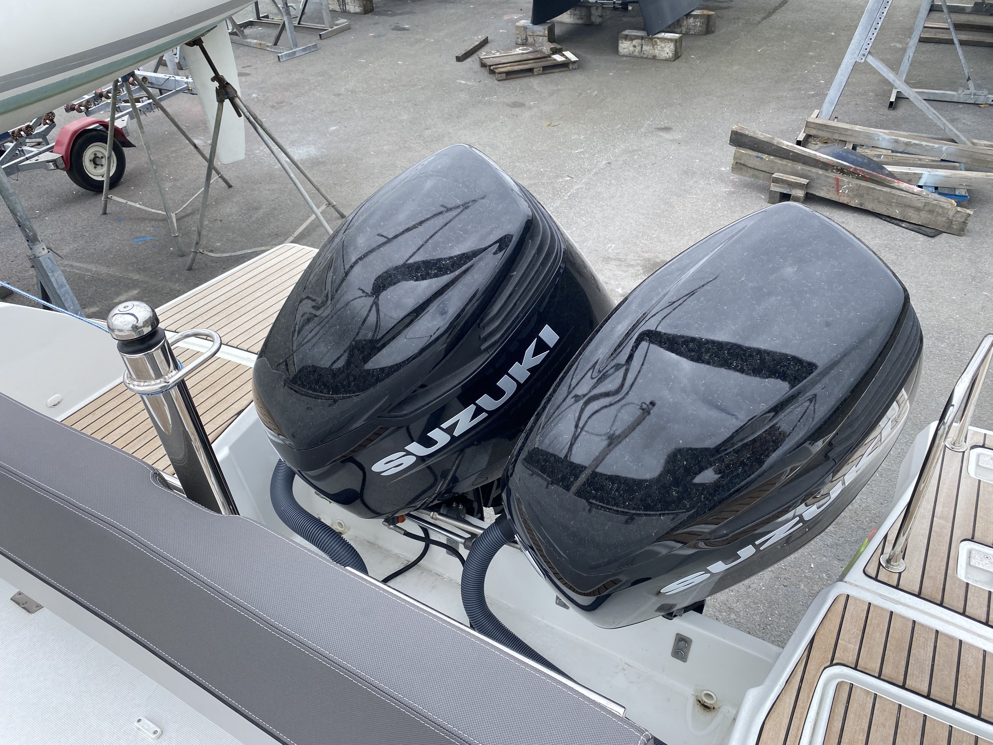 Cap Camarat 9.0 WA équipé de 2x300CV Suzuki ! Première main avec très peu d’heures. Très belle unité, dans un état impeccable, homologué officiellement pour la motorisation en 2x300CV.