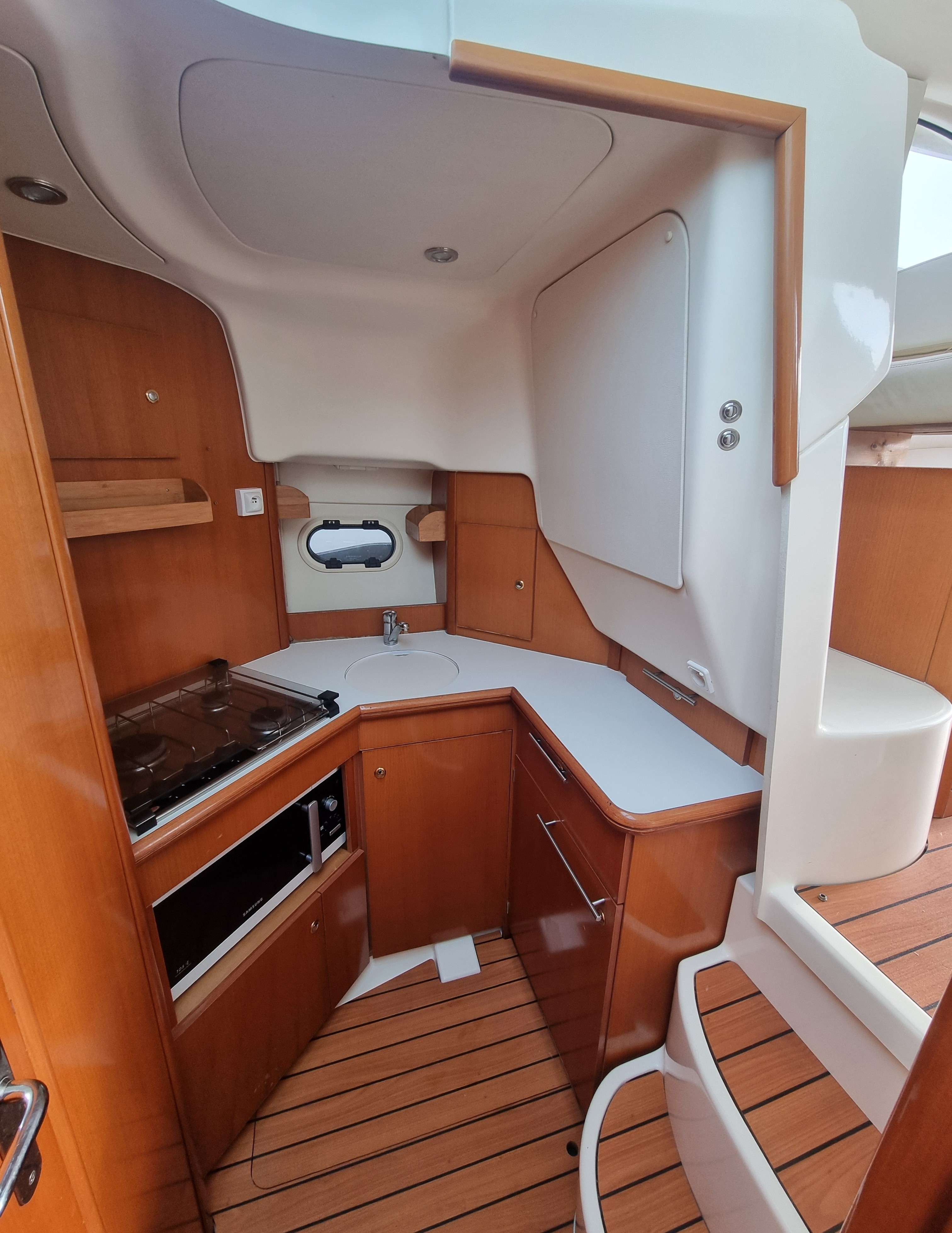 Bienvenue à bord de la Prestige 32 qui porte merveilleusement son nom. Elle suscite le rêve, évoque l’aventure et le dépaysement.