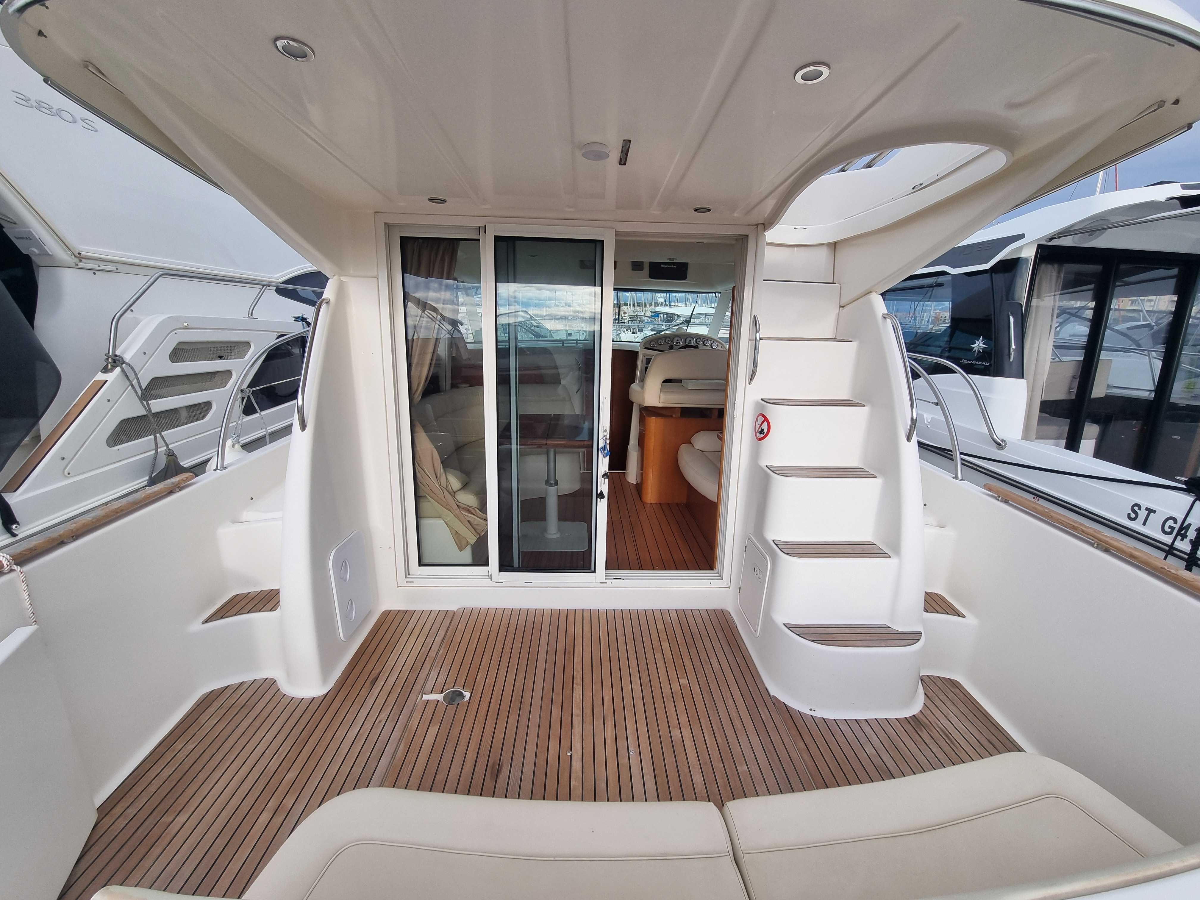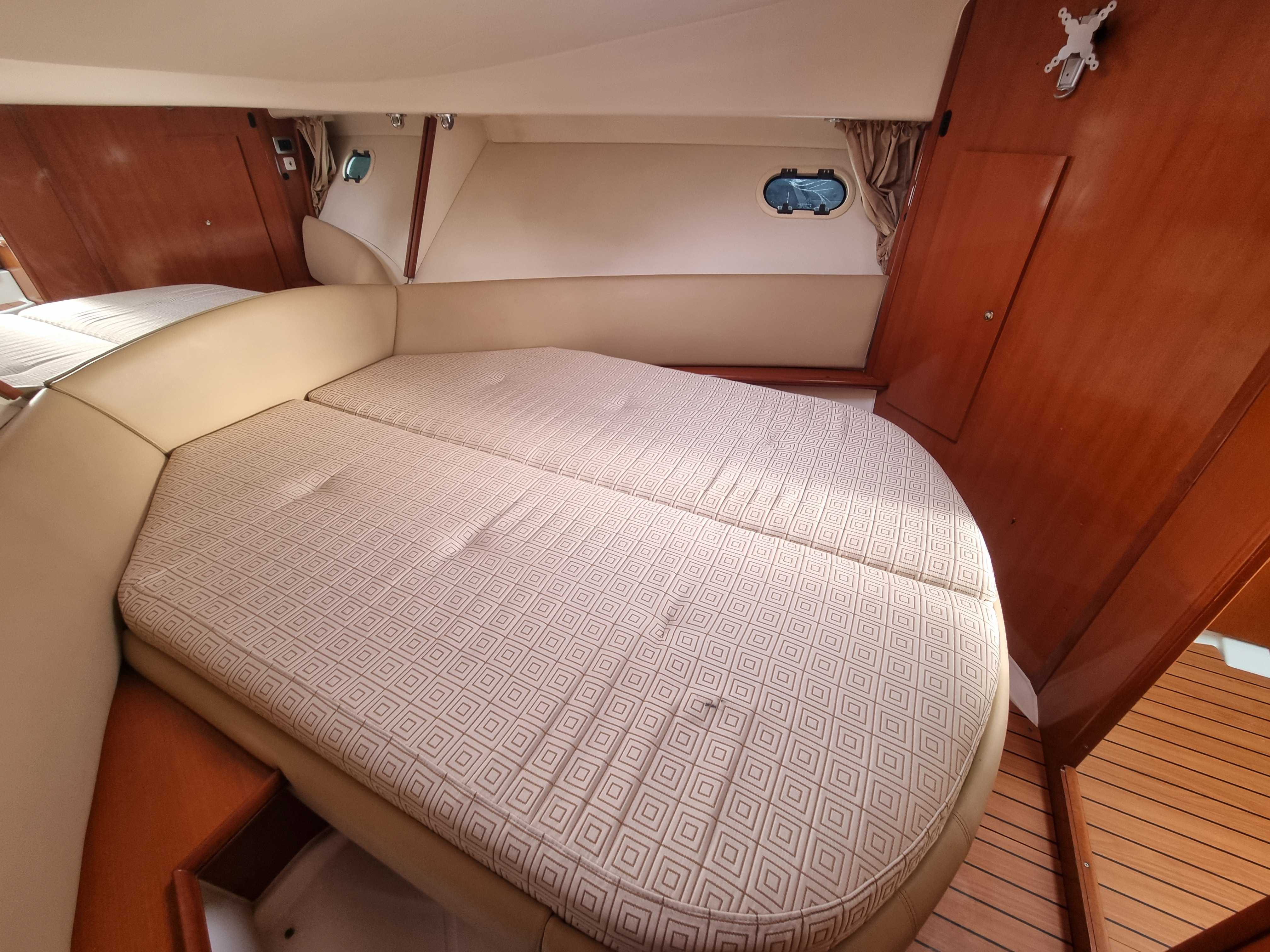 Plus encore que sur une vedette classique, Jeanneau a développé sur la Prestige 32 des aménagements spacieux et bien répartis.