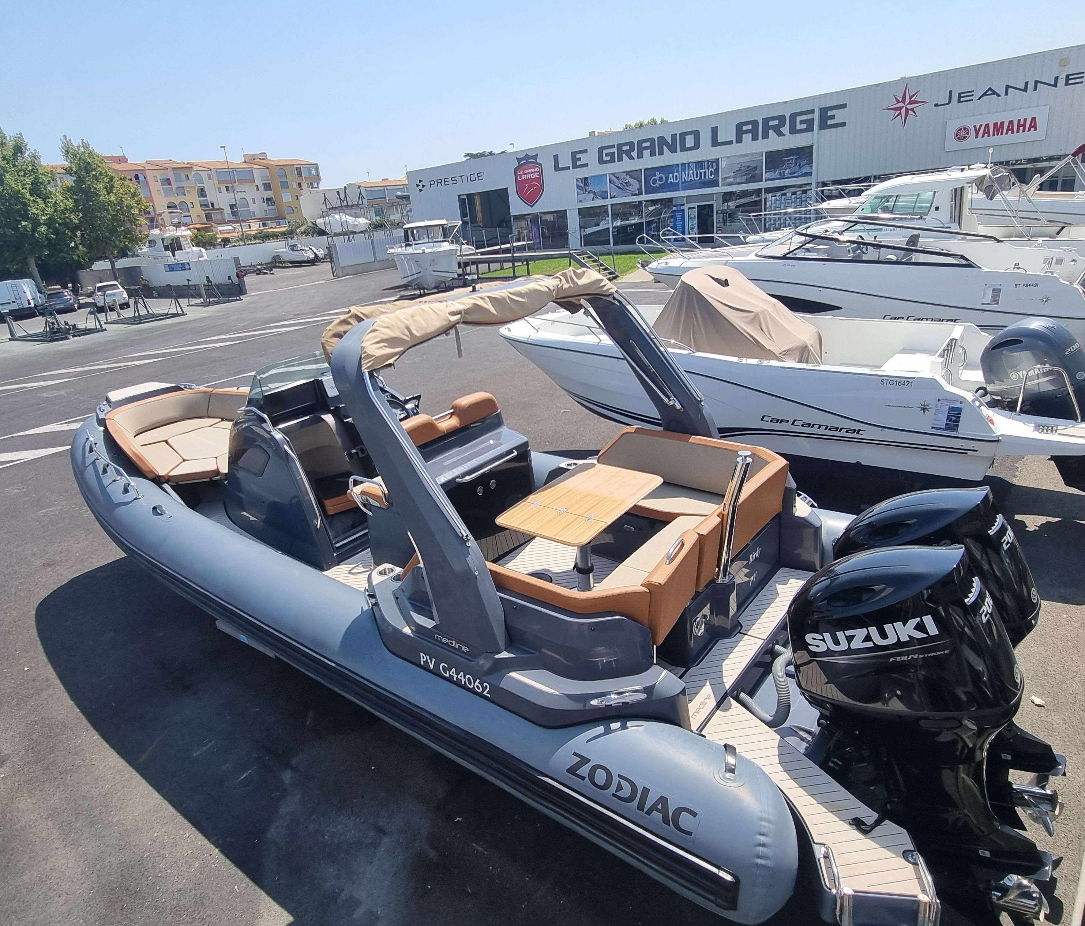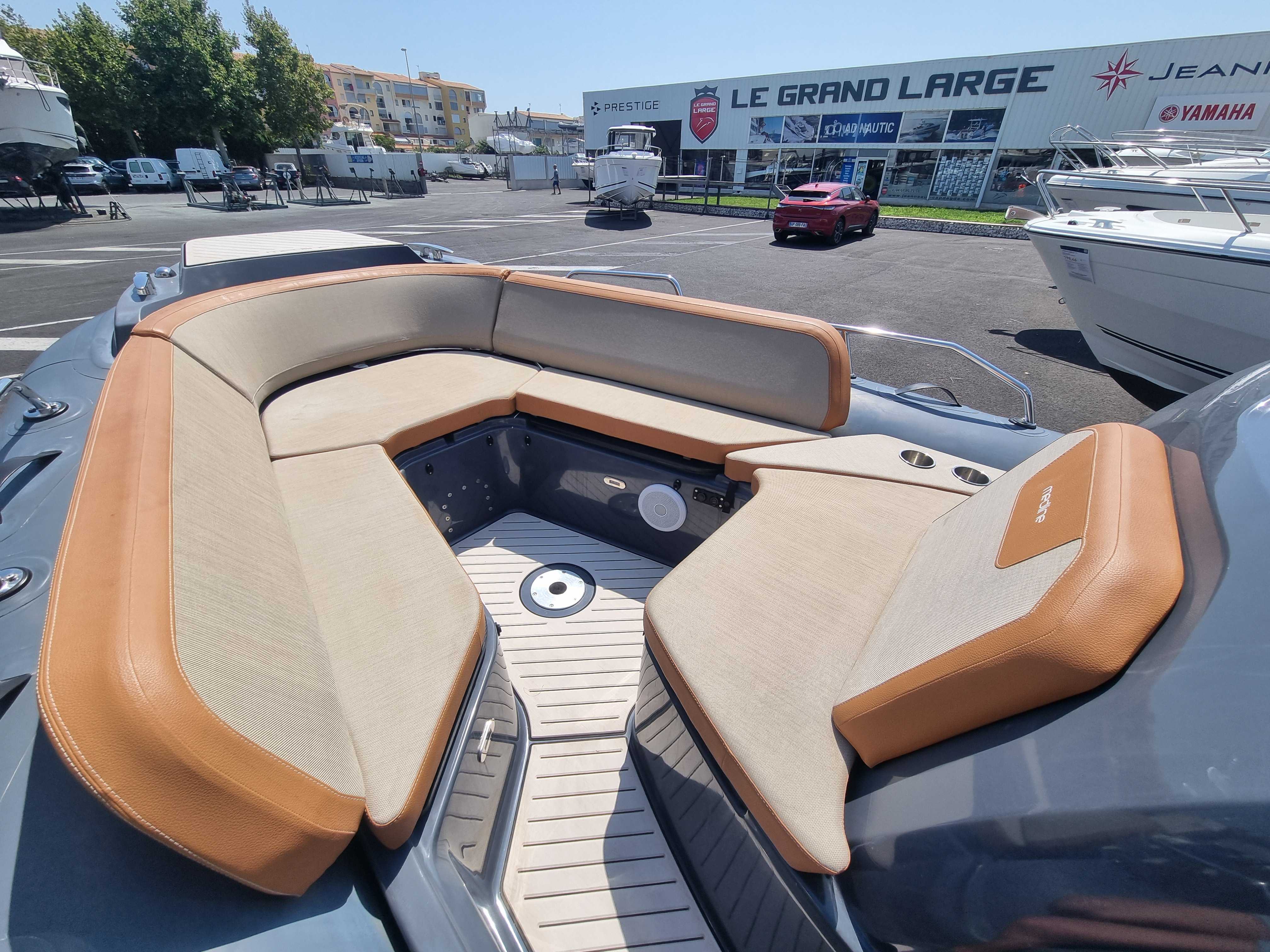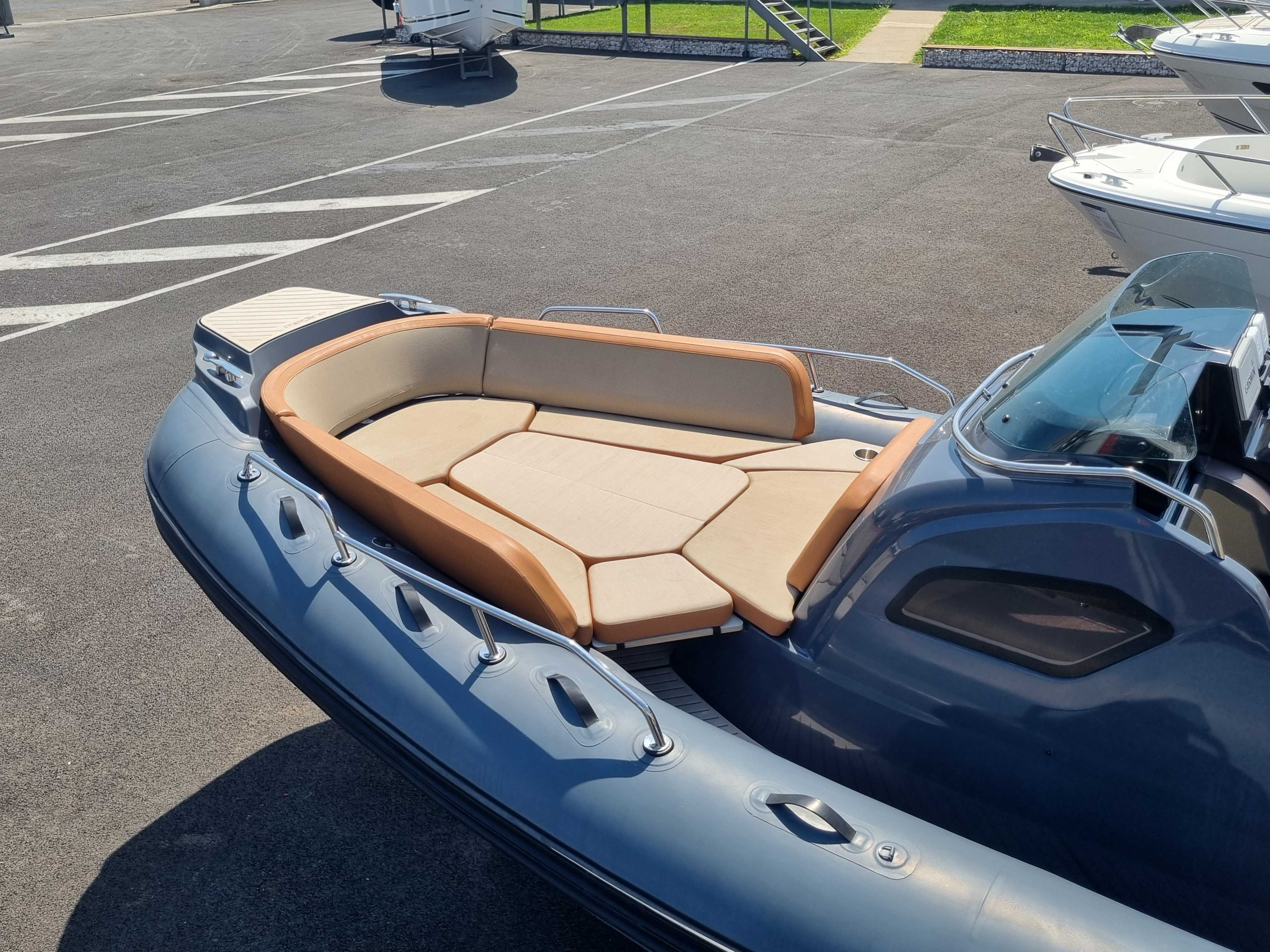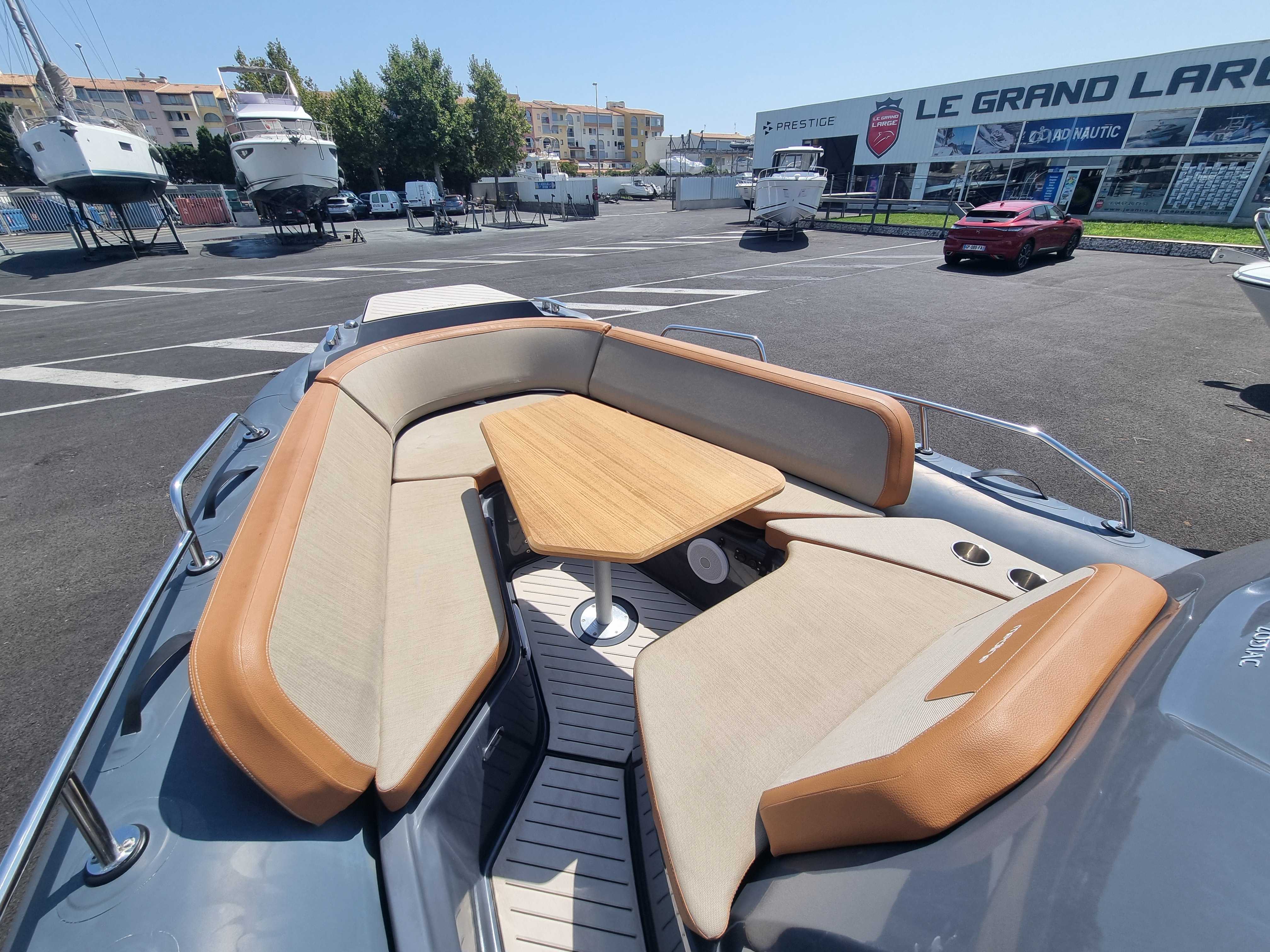 Le Zodiac Medline 9 est un semi-rigide haut de gamme, spécialement conçu pour des sorties en mer confortables et conviviales. Avec ses 9m de long, il offre un espace opimisé pour la détente, incluant un grand bain de soleil à l’avant et un espace de vie spacieux à l’arrière. Avec ses deux moteurs, il garantit une navigation rapide et stable, l’idéal pour les sports nautiques ou les sorties en famille.